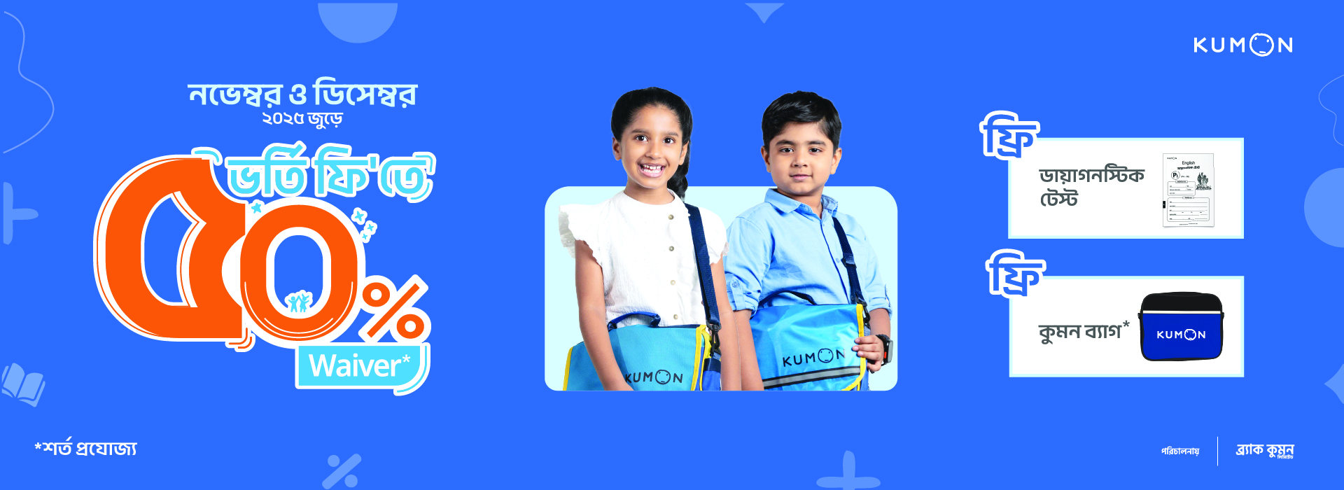 ১ নভেম্বর – ৩১ ডিসেম্বর ২০২৫ এর মধ্যে কুমন শুরু করলে ভর্তি ফি’তে পাচ্ছেন ৫০% ওয়েভার